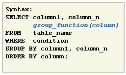 You might need to divide a table of information into groups to produce meaningful results when using group functions. For example, you might want to find the average salary for each department or the oldest hire in each job category. You use the GROUP BY clause to organize rows in a table into groups. You can then use the group functions to return information for each group. For example, you can group data in the EMPLOYEES table by department number and then return the average salary for each department.